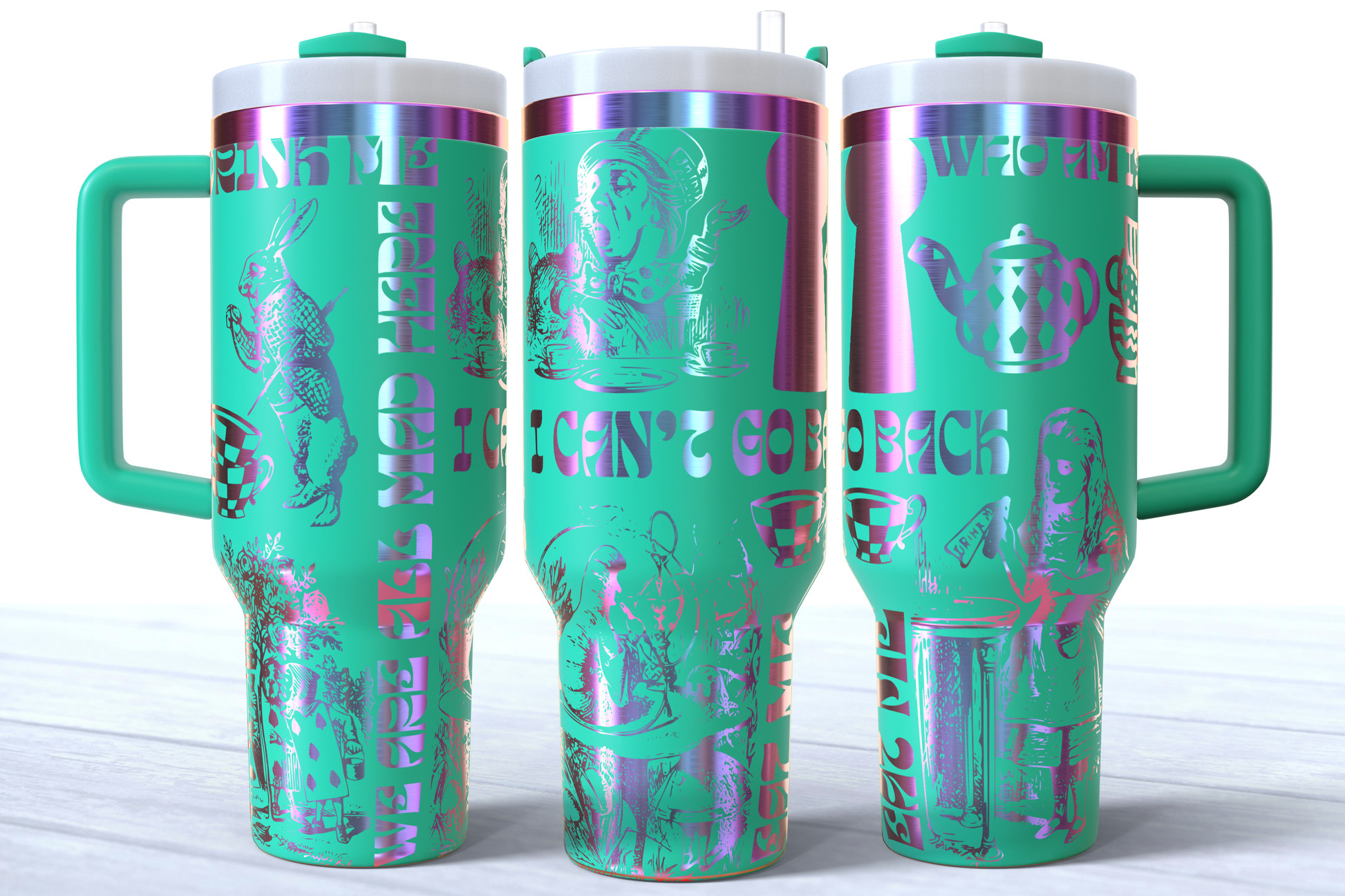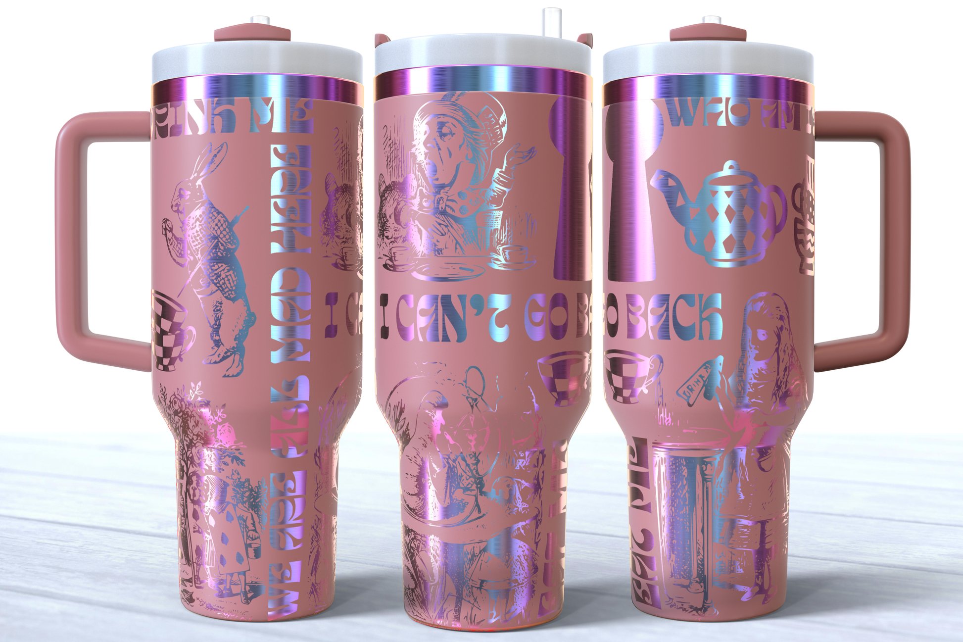 Step into a world of whimsy and wonder with our 40oz Engraved Alice in Wonderland Tumbler! Inspired by the classic tale, this beautifully crafted tumbler features intricate engravings of your favorite Wonderland characters, from the mischievous Cheshire Cat to the enigmatic Mad Hatter.